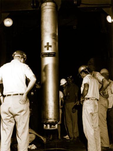 | Keywords: Whetstone Salmon Device.jpg Operation Whetstone - Shot Salmon Experimenters are lowering a canister containing the nuclear explosive https //www llnl gov/str/JulAug02/JulAug50th html llnl gov Federal government of the United States PD-USGov Whetstone Salmon Nuclear explosives test devices |