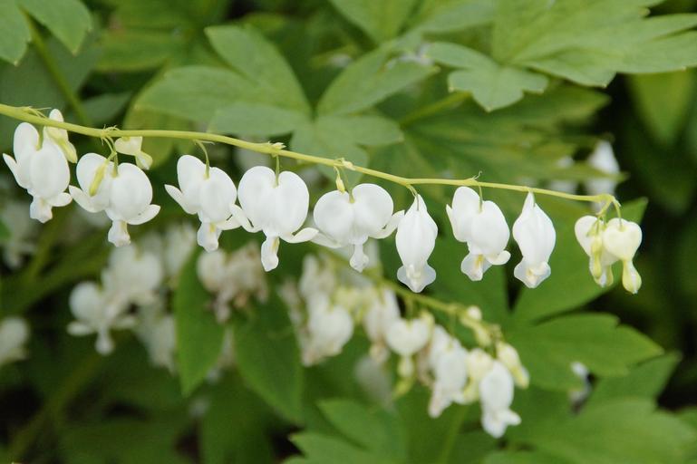 Keywords: white flower blossom bloom watery heart bleeding heart close bloom garden