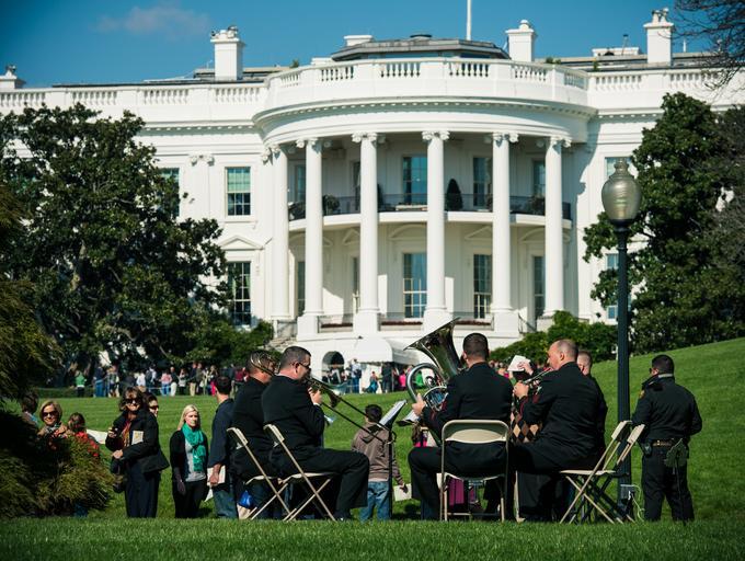 Keywords: outdoor architecture building The US Navy Band Brass Quintet performs on the White House lawn on Sunday, October 27 The US Navy Band Brass Quintet performs on the White House lawn on Sunday, October 27