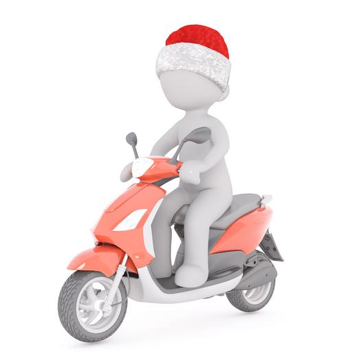 Keywords: white male 3d model full body kick-starter motorcycle moped stunt drive roller christmas santa hat christmas time motorized move mobile santa claus x mas xmas