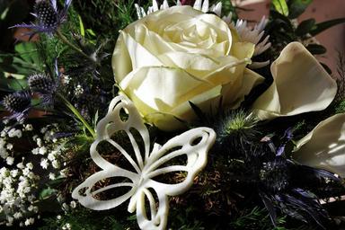 | Keywords: white rose bouquet deco butterfly white calla ornamental thistles gypsophila mother's day birthday bouquet bouquet of roses flowers partial view rose white rose bloom wedding day blum tight binding floristry creative floristisch deco decoration decorative |