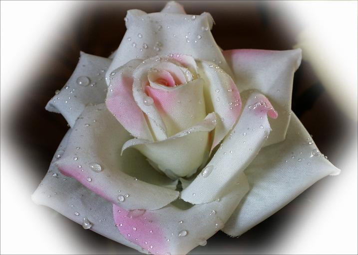 Keywords: white rose fabric water drops vignette close-up flower