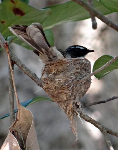 Keywords: white-throated fantail flycatcher nest incubating rhipidura albicollis insectivorous passerine dharwad india bird