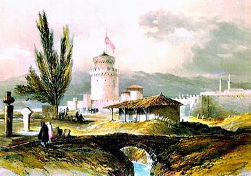| Keywords: White Tower 19th century.jpg Ο Λευκός Πύργος της Θεσσαλονίκης σε σχέδιο του ρώτου μισού του 19ου αιώνα White Tower of Thessaloniki in a painting of the first middle of 19th century http //www vlachophiles net/lear htm First middle of 19th century author PD-Old White Tower Thessaloniki PD-Art Historical images of Thessaloniki 1850s Thessaloniki in the 19th century |