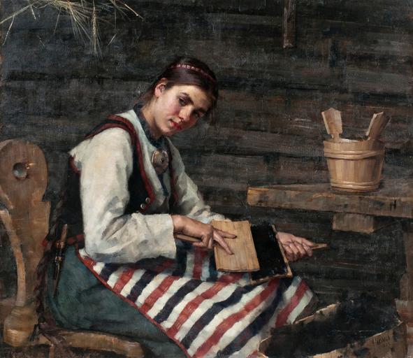 Keywords: Wiik Kardande flicka.jpg en WIIK Maria Girl Carding Wool 1883 <br/>Kardande flicka Oil on canvas 114x131 cm http //www bukowskis com/auctions/F156/517-maria-wiik-kardande-flicka Maria Wiik Finnish 1853-1928 1883 PD-old Maria Wiik Images from Bukowskis |