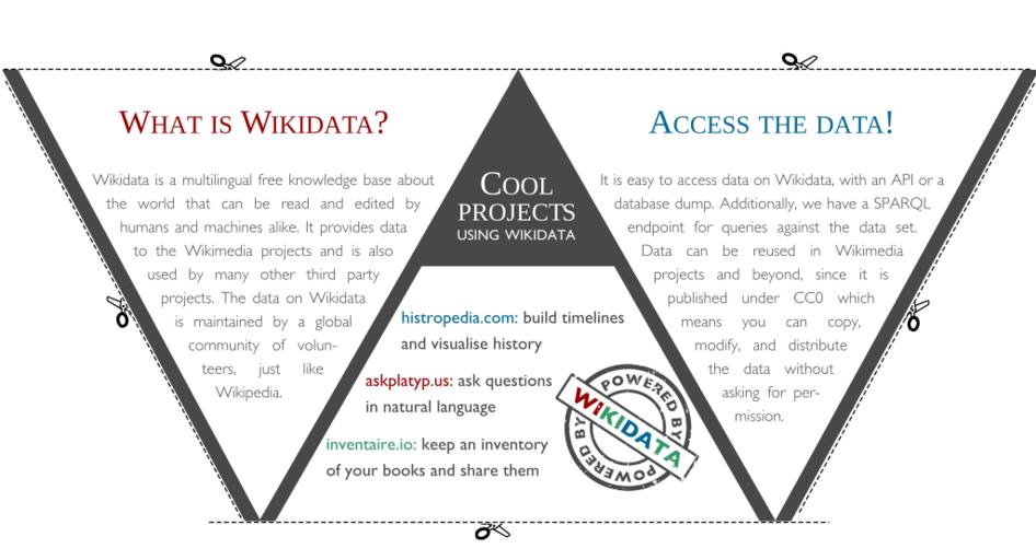 Keywords: Wikidata Flyer for Developers Part 1of2 (INSIDE).svg en This is part 1/2 of the Wikidata flyer for developers There is a second part to this called -Wikidata Flyer for Developers Part 2/2 OUTSIDE - When printing choose 'short edge flip' It's a bit hacky with the white boxes but Scribus doesn't have an option to erase pixels If you know how to improve it feel free to do so or let me know how to fix it 2016-07-13 own Charlie Kritschmar WMDE other versions cc-zero Wikidata Wikidata information materials |