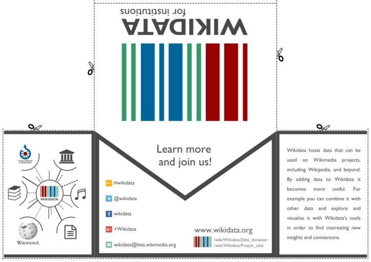 Keywords: Wikidata Flyer for Institutions Part 2of2 (OUTSIDE).svg en This is part 2/2 of the Wikidata flyer for institutions The first part is here -Wikidata Flyer for Institutions Part 1of2 INSIDE - When printing select 'short edge flip' 2016-07-13 own Charlie Kritschmar WMDE other versions cc-zero Wikidata Wikidata information materials |