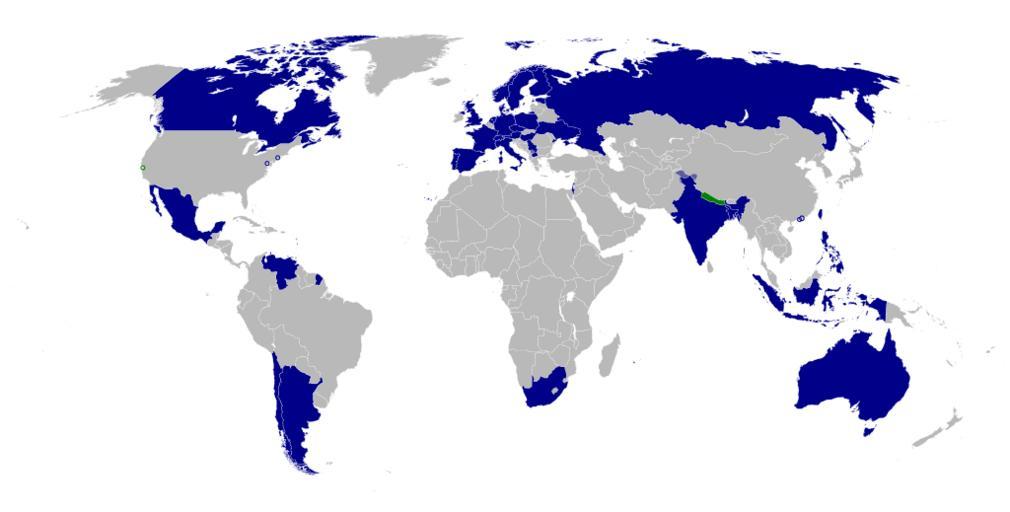 | Keywords: Wikimedia affiliates Wikimania 2013.svg en Map of all recognised Wikimedia chapters blue and Wikimedia user groups with a regional focus green according to m Wikimedia_user_groups and m Wikimedia chapters as per Wikimania 2013 first day of main conference The official recognition date was used for chapters this is the WMF Board of Trustees resolution date for User Groups this is the Affiliations Committee resolution date Chapters that were approved but never officially founded are not included 2015-08-30 own Effeietsanders other versions cc-zero Maps of Wikimedia affiliates Uploaded with UploadWizard |