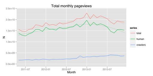 Keywords: Wikimedia crawler requests vs total pageviews.svg en Crawler requests vs total pageviews for Wikimedia sites 2014-01-27 16 10 23 own DarTar cc-zero Uploaded with UploadWizard Wikipedia statistics
