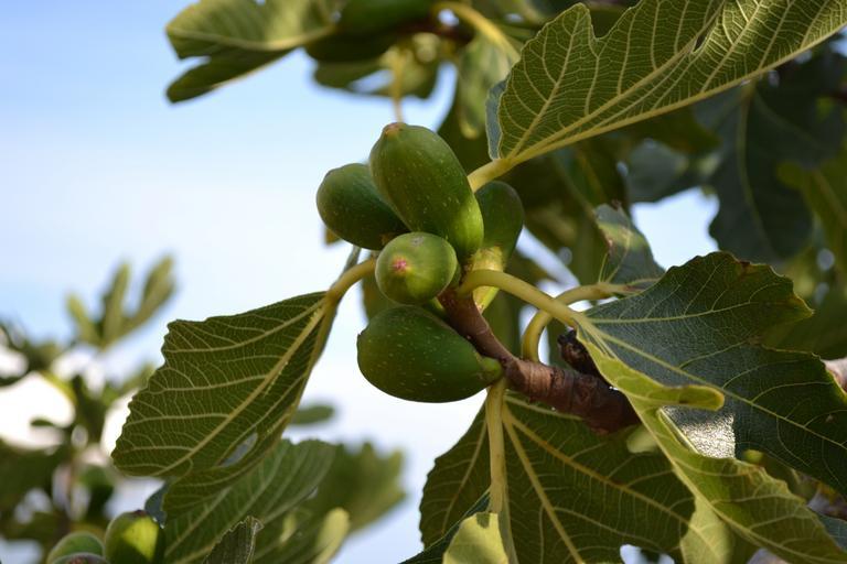 Keywords: wild fig common fig ficus carica young fruit green close-up adam and eve garden of eden fig leaf tree plant wild fig