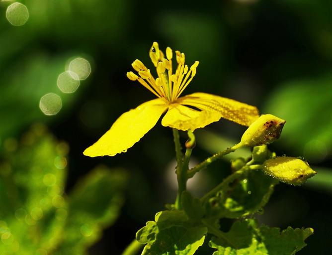 Keywords: wild flower wild herb morgentau yellow stamens bud dew dewdrop nature close macro blossom bloom wet droplets rain field