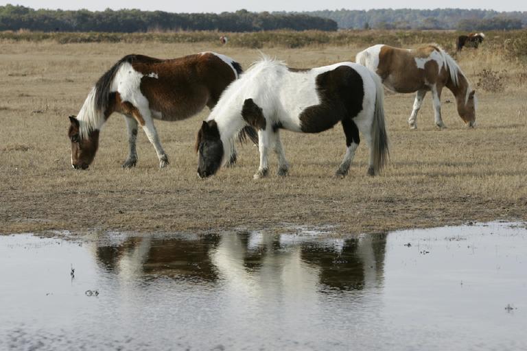 Keywords: wild ponies grazing ponies chincoteague island virginia usa feral prairie nature small wildlife