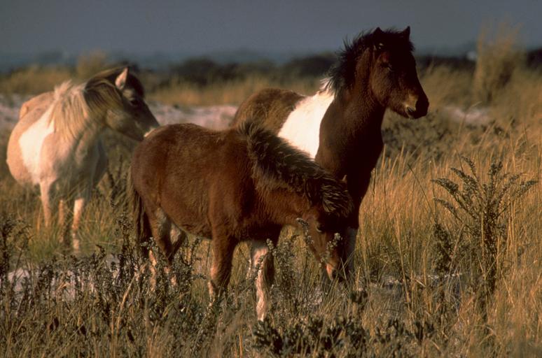 Keywords: wild ponies grazing prairie ponies chincoteague island virginia usa feral nature small wildlife