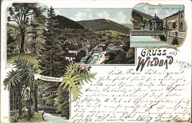 Keywords: Wildbad Bellevue 1899.jpg Ansichtskarte aus Bad Wildbad www ak-ansichtskarten de 1899 oder früher author old PD-old Postcards of Bad Wildbad