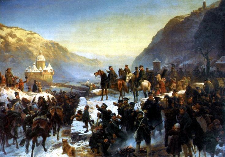 Keywords: Wilhelm Camphausen - Bluechers Rheinuebergang bei Kaub.png Artwork Creator Wilhelm Camphausen Wilhelm Camphausen Blüchers Heer setzt in der Silvesternacht 1813/14 bei Kaub über den Rhein Oil canvas cm Staatliche Museen zu Berlin - Preußischer Kulturbesitz Nationalgalerie object history credit line accession number PD-old-100 Gebhard Leberecht von Blücher Classicist paintings of people 19th-century paintings of battles 1813 Kaub 1813 Paintings of people with snow oil paintings of people 19th-century paintings not categorised by year Deutsches Historisches Museum Wilhelm Camphausen Rhine in art Paintings of rivers |
