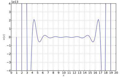 Keywords: Wilkinson polynomial.svg en Plot of Wilkinson's polynomial of degree 20 <math>w x \prod 20 _ i 1 x-i </math> own Krishnavedala 2011-06-12 File Wilkinson_polynomial png validSVG Cc-zero Polynomial functions Numerical analysis James H Wilkinson |