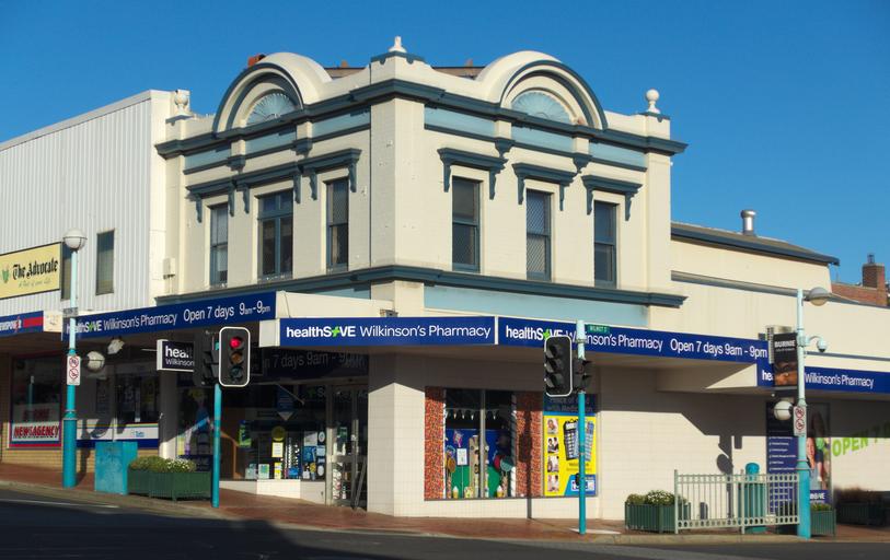 | Keywords: Wilkinsons-Pharmacy-Burnie-20160720-001.jpg en Wilkinson's Pharmacy at 14 Wilson Street Burnie on the corner of Wilmot Street It was built in 1923 as a pharmacy for F G Ivey who had already operated a pharmacy on the same site since 1896 for H G Spicer of Stanley http //trove nla gov au/newspaper/article/86421458http //trove nla gov au/newspaper/article/66779858http //trove nla gov au/newspaper/article/52607592 Described by the Burnie Heritage Study 2012 as Federation Free Classical type of architecture http //www burnie net/Council/Plans-and-Strategies 2016-07-19 23 37 04 UTC own Gary Houston other versions -41 050939 145 906835 cc-zero Buildings in Burnie 2016 in Burnie Shops in Tasmania Pharmacies in Australia Federation architecture in Australia Built in Australia in 1923 |