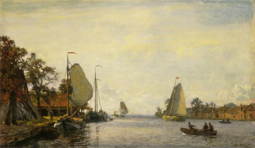 | Keywords: Willem Bastiaan Tholen - Zomers riviergezicht met zeilschepen.jpg en Riverscape with sailing boats in the summer 35 4 cm x 59 cm oil on canvas private collection Nederland uit de kunst ISBN 9058973794 Creator Willem Bastiaan Tholen 1904 PD-old-auto 1931 Willem Bastiaan Tholen |