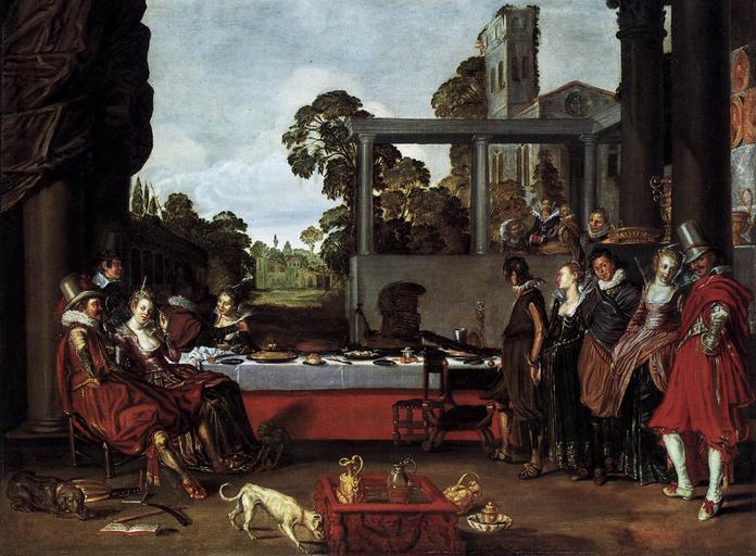 | Keywords: Willem Pietersz. Buytewech - Banquet in the Open Air - WGA3721.jpg Artwork Q3633809 Creator Willem Pietersz Buytewech ca 1615 Oil on canvas size cm 71 94 Institution Gemäldegalerie Berlin object history credit line accession number WGA link 3721 http //www wga hu/art/b/buytewec/banquet jpg http //www wga hu/html/b/buytewec/banquet html PD-old-100 painting genre Dutch 1601-1650 Willem Pietersz Buytewech Dutch Golden Age paintings in the Gemäldegalerie Berlin Buytewech 17th-century paintings from Spain WGA form painting WGA type genre WGA School Dutch WGA time period 1601-1650 Redressed birds Paintings of banquets 17th-century oil on canvas paintings in Germany 1615 paintings in Germany 1610s fashion 17th-century paintings of dogs People with dogs in art Merry company paintings ImageNote 1 605 489 314 177 1359 1000 2 Replumed peacock ImageNoteEnd 1 |