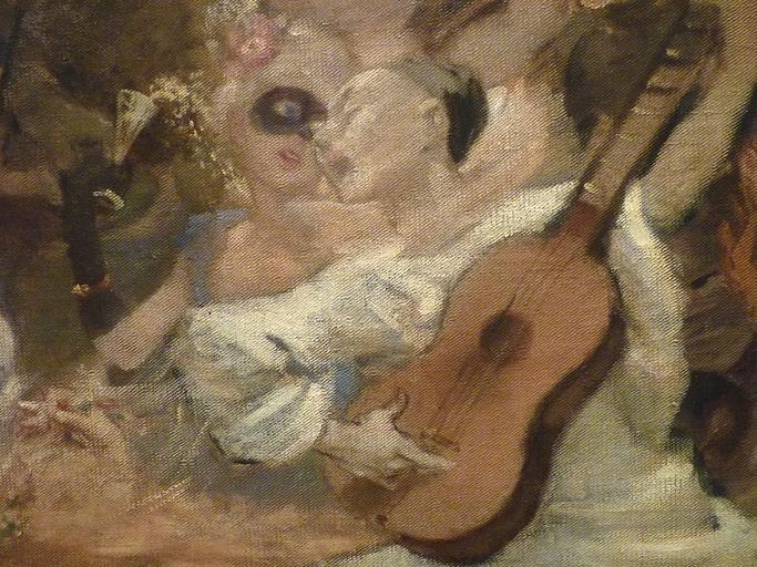 Keywords: WILLETTE Adolphe,1884 - Parce Domine - Detail 036.jpg - Detail 036 - Pierrot chantant et jouant de la guitare pour une femme masquée avec une coupe de champagne - Pierrot singing and playing guitare for a masked woman with a champagne glass - Montmartre - 1884 Oil on canvas Montmartre Own other versions PD-old-auto 1926 Details of Parce Domine by Adolphe Willette |