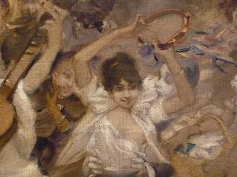 Keywords: WILLETTE Adolphe,1884 - Parce Domine - Detail 042.jpg - Detail 042 - Jeune femme jouant du tambourin - Young woman playing tambourine - Montmartre - 1884 Oil on canvas Montmartre Own other versions PD-old-auto 1926 Details of Parce Domine by Adolphe Willette |