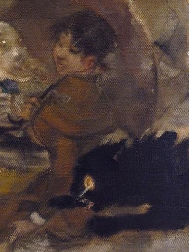 Keywords: WILLETTE Adolphe,1884 - Parce Domine - Detail 131.jpg - Detail 131 - Jeune femme aux yeux baissés et un gros chat noir bondissant - Young woman with eyes cast down and a huge black cat jumping - Montmartre - 1884 Oil on canvas Montmartre Own other versions PD-old-auto 1926 Details of Parce Domine by Adolphe Willette |