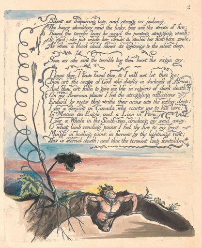 Keywords: William Blake - America. A Prophecy, Plate 4, "Silent as despairing love...." - Google Art Project.jpg print blue pen ink black watercolor paper cream Relief etching printed in blue with pen and black ink and watercolor on moderately thick slightly textured cream wove paper London 1757 London 1827 William male 2369124 Blake British 1757 - 1827 /collection/yale-center-for-british-art/artwork/america-a-prophecy-plate-4-silent-as-despairing-love-william-blake/2381738/ William Blake Artist /artist/william-blake/4130035/ 4130035 /collection/yale-center-for-british-art/ Yale Center for British Art 2305845 http //britishart yale edu/ 2/23/2012 9 54 35 PM /collection/yale-center-for-british-art/artwork/america-a-prophecy-plate-4-silent-as-despairing-love-william-blake/2381738/ 1793 1793 roots men text trees vines historical subject Relief etching printed in blue with pen and black ink and watercolor on moderately thick slightly textured cream wove paper 216 2381738 False 1793 3/24/2012 4 09 07 PM YCBA/lido-TMS-3863 http //collections britishart yale edu/vufind/Record/1668099 Yale Center for British Art Paul Mellon Collection print 1790 1800 London Creation w171 x h216 cm 1793 False 0 814453125 Volume america-a-prophecy-plate-4-silent-as-despairing-love-william-blake America A Prophecy Plate 4 Silent as despairing love a 171 Inscribed in blue ink upper right 2 Inscription _Signed_and_Dated Not signed not dated Not on View Relief etching printed in blue with pen and black ink and watercolor on moderately thick slightly textured cream wove paper roots men text trees vines historical subject special url_id NgF1v3nz95QyJQ PD-old-100-1923 1827 America a Prophecy - copy M Google Art Project works by William Blake |