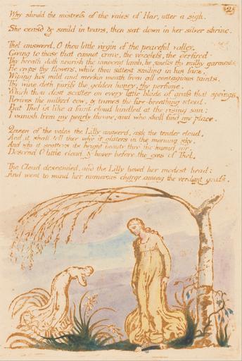Keywords: William Blake - The Book of Thel, Plate 4, "Why should the mistress . . . ." - Google Art Project.jpg print brown pen ink paper cream Relief etching printed in brown with pen and ink on moderately thick slightly textured cream wove paper print brown pen ink watercolor paper cream Relief etching printed in brown with pen and ink and watercolor on moderately thick slightly textured cream wove paper London 1757 London 1827 William male 2369124 Blake British 1757 - 1827 /collection/yale-center-for-british-art/artwork/the-book-of-thel-plate-4-why-should-the-mistress-william-blake/2441875/ William Blake Artist /artist/william-blake/4130035/ 4130035 /collection/yale-center-for-british-art/ Yale Center for British Art 2305845 http //britishart yale edu/ 2/24/2012 12 20 05 AM /collection/yale-center-for-british-art/artwork/the-book-of-thel-plate-4-why-should-the-mistress-william-blake/2441875/ 1789 1789 leaf women willows text plants trees flowers vines gowns historical subject Relief etching printed in brown with pen and ink and watercolor on moderately thick slightly textured cream wove paper 152 2441875 False 1789 3/24/2012 10 17 06 PM YCBA/lido-TMS-7220 http //collections britishart yale edu/vufind/Record/1670842 Yale Center for British Art Paul Mellon Collection print 1780 1790 London Creation w108 x h152 cm 1789 False 0 671875 Item the-book-of-thel-plate-4-why-should-the-mistress-william-blake The Book of Thel Plate 4 Why should the mistress b 108 No inscription Inscription _Signed_and_Dated Not signed not dated Not on View Relief etching printed in brown with pen and ink and watercolor on moderately thick slightly textured cream wove paper leaf women willows text plants trees flowers vines gowns historical subject special url_id ogHe3v9Bo4Y_GQ PD-old-100-1923 1827 The Book of Thel Google Art Project works by William Blake |