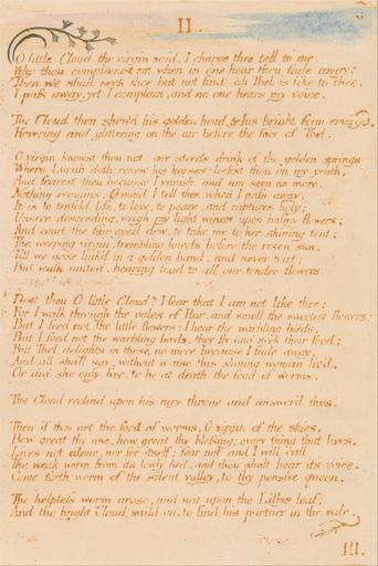 Keywords: William Blake - The Book of Thel, Plate 5, "II. , O little Cloud . . . ." - Google Art Project.jpg print brown pen ink paper cream Relief etching printed in brown with pen and ink on moderately thick slightly textured cream wove paper print brown pen ink watercolor paper cream Relief etching printed in brown with pen and ink and watercolor on moderately thick slightly textured cream wove paper London 1757 London 1827 William male 2369124 Blake British 1757 - 1827 /collection/yale-center-for-british-art/artwork/the-book-of-thel-plate-5-ii-o-little-cloud-william-blake/2354708/ William Blake Artist /artist/william-blake/4130035/ 4130035 /collection/yale-center-for-british-art/ Yale Center for British Art 2305845 http //britishart yale edu/ 2/23/2012 9 34 13 PM /collection/yale-center-for-british-art/artwork/the-book-of-thel-plate-5-ii-o-little-cloud-william-blake/2354708/ 1789 1789 text flowers vines historical subject Relief etching printed in brown with pen and ink and watercolor on moderately thick slightly textured cream wove paper 152 2354708 False 1789 3/24/2012 1 34 38 PM YCBA/lido-TMS-2257 http //collections britishart yale edu/vufind/Record/1667251 Yale Center for British Art Paul Mellon Collection print 1780 1790 London Creation w108 x h152 cm 1789 False 0 66796875 Item the-book-of-thel-plate-5-ii-o-little-cloud-william-blake The Book of Thel Plate 5 II / O little Cloud b 108 No inscription Inscription _Signed_and_Dated Not signed not dated Not on View Relief etching printed in brown with pen and ink and watercolor on moderately thick slightly textured cream wove paper text flowers vines historical subject special url_id zAEC6dZ5He6VcA PD-old-100-1923 1827 The Book of Thel Google Art Project works by William Blake |