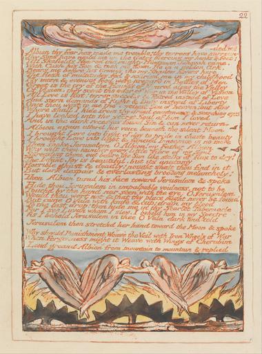 Keywords: William Blake - Jerusalem, Plate 22, "Albion thy Fear has made me tremble...." - Google Art Project.jpg print orange pen ink black watercolor paper cream Relief etching printed in orange with pen and black ink and watercolor on moderately thick smooth cream wove paper London 1757 London 1827 William male 2369124 Blake British 1757 - 1827 /collection/yale-center-for-british-art/artwork/jerusalem-plate-22-albion-thy-fear-has-made-me-tremble-william-blake/2372690/ William Blake Artist /artist/william-blake/4130035/ 4130035 /collection/yale-center-for-british-art/ Yale Center for British Art 2305845 http //britishart yale edu/ 2/23/2012 9 46 18 PM /collection/yale-center-for-british-art/artwork/jerusalem-plate-22-albion-thy-fear-has-made-me-tremble-william-blake/2372690/ 1804 1804 to 1820 angels sky wings flames fire water gear text nudes historical subject Relief etching printed in orange with pen and black ink and watercolor on moderately thick smooth cream wove paper 213 2372690 False 1820 3/24/2012 3 12 30 PM YCBA/lido-TMS-3451 http //collections britishart yale edu/vufind/Record/1667729 Yale Center for British Art Paul Mellon Collection print 1800 1830 London Creation w152 x h213 cm 1804 to 1820 False 0 7421875 Volume jerusalem-plate-22-albion-thy-fear-has-made-me-tremble-william-blake Jerusalem Plate 22 Albion thy Fear has made me tremble j 152 No inscription Inscription _Signed_and_Dated Not signed not dated Not on View Relief etching printed in orange with pen and black ink and watercolor on moderately thick smooth cream wove paper angels sky wings flames fire water gear text nudes historical subject special url_id XwGJFOH8wna3lw PD-old-100-1923 1827 Jerusalem The Emanation of the Giant Albion - copy E 022 Google Art Project works by William Blake |