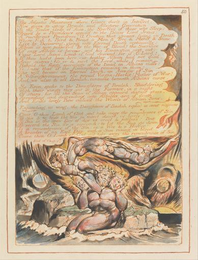 Keywords: William Blake - Jerusalem, Plate 50, "The Atlantic Mountains...." - Google Art Project.jpg print orange pen ink black watercolor paper cream Relief etching printed in orange with pen and black ink and watercolor on moderately thick smooth cream wove paper London 1757 London 1827 William male 2369124 Blake British 1757 - 1827 /collection/yale-center-for-british-art/artwork/jerusalem-plate-50-the-atlantic-mountains-william-blake/2373600/ William Blake Artist /artist/william-blake/4130035/ 4130035 /collection/yale-center-for-british-art/ Yale Center for British Art 2305845 http //britishart yale edu/ 2/23/2012 9 47 04 PM /collection/yale-center-for-british-art/artwork/jerusalem-plate-50-the-atlantic-mountains-william-blake/2373600/ 1804 1804 to 1820 clouds moon sun rain lightning men fire text island crowns nudes historical subject Relief etching printed in orange with pen and black ink and watercolor on moderately thick smooth cream wove paper 226 2373600 False 1820 3/25/2012 9 08 23 PM YCBA/lido-TMS-3482 http //collections britishart yale edu/vufind/Record/1667769 Yale Center for British Art Paul Mellon Collection print 1800 1830 Felpham Creation w162 x h226 cm 1804 to 1820 False 0 759765625 Volume jerusalem-plate-50-the-atlantic-mountains-william-blake Jerusalem Plate 50 The Atlantic Mountains j 162 No inscription Inscription _Signed_and_Dated Not signed not dated Not on View Relief etching printed in orange with pen and black ink and watercolor on moderately thick smooth cream wove paper clouds moon sun rain lightning men fire text island crowns nudes historical subject special url_id -gHhlJeW2o9emA PD-old-100-1923 1827 Jerusalem The Emanation of the Giant Albion - copy E 050 Google Art Project works by William Blake |