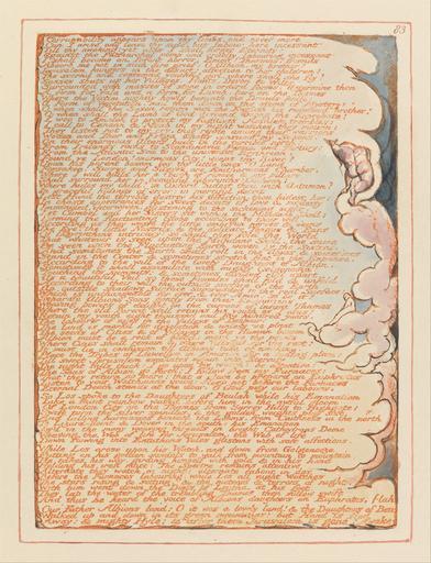 Keywords: William Blake - Jerusalem, Plate 83, "Corruptability appears upon thy limbs...." - Google Art Project.jpg print orange pen ink black watercolor paper cream Relief etching printed in orange with pen and black ink and watercolor on moderately thick smooth cream wove paper London 1757 London 1827 William male 2369124 Blake British 1757 - 1827 /collection/yale-center-for-british-art/artwork/jerusalem-plate-83-corruptability-appears-upon-thy-limbs-william-blake/2373640/ William Blake Artist /artist/william-blake/4130035/ 4130035 /collection/yale-center-for-british-art/ Yale Center for British Art 2305845 http //britishart yale edu/ 2/23/2012 9 48 01 PM /collection/yale-center-for-british-art/artwork/jerusalem-plate-83-corruptability-appears-upon-thy-limbs-william-blake/2373640/ 1804 1804 to 1820 clouds sky smoke text text nudes historical subject historical subject Relief etching printed in orange with pen and black ink and watercolor on moderately thick smooth cream wove paper 222 2373640 False 1820 3/24/2012 3 19 30 PM YCBA/lido-TMS-3518 http //collections britishart yale edu/vufind/Record/1667809 Yale Center for British Art Paul Mellon Collection print 1800 1830 Felpham Creation w162 x h222 cm 1804 to 1820 False 0 765625 Volume jerusalem-plate-83-corruptability-appears-upon-thy-limbs-william-blake Jerusalem Plate 83 Corruptability appears upon thy limbs j 162 No inscription Inscription _Signed_and_Dated Not signed not dated Not on View Relief etching printed in orange with pen and black ink and watercolor on moderately thick smooth cream wove paper clouds sky smoke text text nudes historical subject historical subject special url_id GgE8jM3AvudlGA PD-old-100-1923 1827 Jerusalem The Emanation of the Giant Albion - copy E 084 Google Art Project works by William Blake |