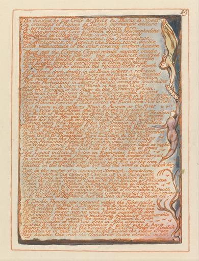Keywords: William Blake - Jerusalem, Plate 89, "Tho divided by the Cross...." - Google Art Project.jpg print orange pen ink black watercolor paper cream Relief etching printed in orange with pen and black ink and watercolor on moderately thick smooth cream wove paper London 1757 London 1827 William male 2369124 Blake British 1757 - 1827 /collection/yale-center-for-british-art/artwork/jerusalem-plate-89-tho-divided-by-the-cross-william-blake/2373653/ William Blake Artist /artist/william-blake/4130035/ 4130035 /collection/yale-center-for-british-art/ Yale Center for British Art 2305845 http //britishart yale edu/ 2/23/2012 9 48 14 PM /collection/yale-center-for-british-art/artwork/jerusalem-plate-89-tho-divided-by-the-cross-william-blake/2373653/ 1804 1804 to 1820 branches women sky text vines historical subject Relief etching printed in orange with pen and black ink and watercolor on moderately thick smooth cream wove paper 203 2373653 False 1820 3/25/2012 9 04 56 PM YCBA/lido-TMS-3524 http //collections britishart yale edu/vufind/Record/1667816 Yale Center for British Art Paul Mellon Collection print 1800 1830 Felpham Creation w146 x h203 cm 1804 to 1820 False 0 76171875 Volume jerusalem-plate-89-tho-divided-by-the-cross-william-blake Jerusalem Plate 89 Tho divided by the Cross j 146 No inscription Inscription _Signed_and_Dated Not signed not dated Not on View Relief etching printed in orange with pen and black ink and watercolor on moderately thick smooth cream wove paper branches women sky text vines historical subject special url_id 7AGXDPyP3iGhhA PD-old-100-1923 1827 Jerusalem The Emanation of the Giant Albion - copy E 089 Google Art Project works by William Blake |