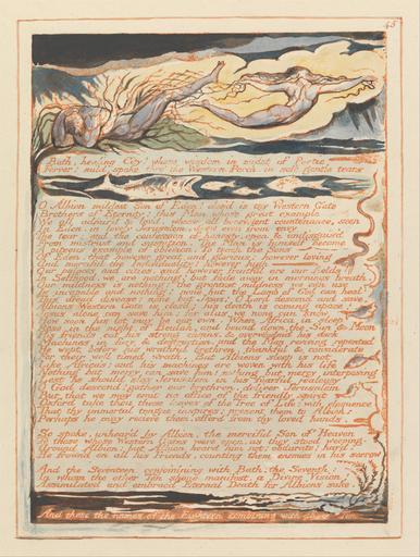 Keywords: William Blake - Jerusalem, Plate 45, "Bath, healing City!...." - Google Art Project.jpg print orange pen ink black watercolor paper cream Relief etching printed in orange with pen and black ink and watercolor on moderately thick smooth cream wove paper London 1757 London 1827 William male 2369124 Blake British 1757 - 1827 /collection/yale-center-for-british-art/artwork/jerusalem-plate-45-bath-healing-city-william-blake/2389102/ William Blake Artist /artist/william-blake/4130035/ 4130035 /collection/yale-center-for-british-art/ Yale Center for British Art 2305845 http //britishart yale edu/ 2/23/2012 9 46 54 PM /collection/yale-center-for-british-art/artwork/jerusalem-plate-45-bath-healing-city-william-blake/2389102/ 1804 1804 to 1820 clouds branches women fish serpent snake men text nudes historical subject Relief etching printed in orange with pen and black ink and watercolor on moderately thick smooth cream wove paper 226 2389102 False 1820 3/24/2012 4 55 16 PM YCBA/lido-TMS-3476 http //collections britishart yale edu/vufind/Record/1667762 Yale Center for British Art Paul Mellon Collection print 1800 1830 Felpham Creation w162 x h226 cm 1804 to 1820 False 0 75390625 Volume jerusalem-plate-45-bath-healing-city-william-blake Jerusalem Plate 45 Bath healing City j 162 No inscription Inscription _Signed_and_Dated Not signed not dated Not on View Relief etching printed in orange with pen and black ink and watercolor on moderately thick smooth cream wove paper clouds branches women fish serpent snake men text nudes historical subject special url_id XwEFvDRR2FAidg PD-old-100-1923 1827 Google Art Project works by William Blake Jerusalem The Emanation of the Giant Albion - copy E - Google Art Project 045 |
