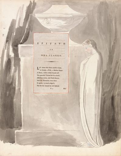 Keywords: William Blake - The Poems of Thomas Gray, Design 103, "Epitaph on Mrs. Clarke." - Google Art Project.jpg watercolor pen ink black graphite paper cream Watercolor with pen and black ink and graphite on moderately thick moderately textured cream wove paper London 1757 London 1827 William male 2369124 Blake British 1757 - 1827 /collection/yale-center-for-british-art/artwork/the-poems-of-thomas-gray-design-103-epitaph-on-mrs-clarke-william-blake/2374668/ William Blake Artist /artist/william-blake/4130035/ 4130035 /collection/yale-center-for-british-art/ Yale Center for British Art 2305845 http //britishart yale edu/ 2/23/2012 9 49 30 PM /collection/yale-center-for-british-art/artwork/the-poems-of-thomas-gray-design-103-epitaph-on-mrs-clarke-william-blake/2374668/ 1797 between 1797 and 1798 sitting girl man fireplace monument hearth text grave tomb obelisk tombstone chair candle mantle gown historical subject book urn mourning Watercolor with pen and black ink and graphite on moderately thick slightly textured cream wove paper with inlaid letterpress page 419 2374668 False 1798 3/24/2012 3 24 35 PM YCBA/lido-TMS-3584 http //collections britishart yale edu/vufind/Record/1667876 Yale Center for British Art Paul Mellon Collection painting 1790 1800 Felpham Creation w324 x h419 cm between 1797 and 1798 False 0 775390625 Volume the-poems-of-thomas-gray-design-103-epitaph-on-mrs-clarke-william-blake The Poems of Thomas Gray Design 103 Epitaph on Mrs Clarke p 324 Inscribed on verso in graphite upper center x Inscription _Signed_and_Dated Not signed not dated Not on View Watercolor with pen and black ink and graphite on moderately thick slightly textured cream wove paper with inlaid letterpress page sitting girl man fireplace monument hearth text grave tomb obelisk tombstone chair candle mantle gown historical subject book urn mourning special url_id 3wH1KDX6jnzkow PD-old-100-1923 1827 Google Art Project works by William Blake William Blake's illustrations to Thomas Gray's Poems 103 |