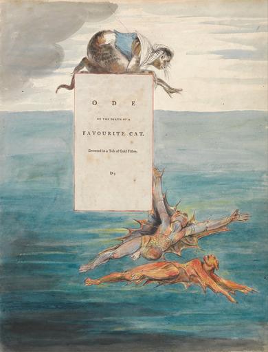 | Keywords: William Blake - The Poems of Thomas Gray, Design 7, "Ode on the Death of a Favourite Cat." - Google Art Project.jpg watercolor pen ink black graphite paper cream Watercolor with pen and black ink and graphite on moderately thick moderately textured cream wove paper London 1757 London 1827 William male 2369124 Blake British 1757 - 1827 /collection/yale-center-for-british-art/artwork/the-poems-of-thomas-gray-design-7-ode-on-the-death-of-a-favourite-cat-william-blake/2388322/ William Blake Artist /artist/william-blake/4130035/ 4130035 /collection/yale-center-for-british-art/ Yale Center for British Art 2305845 http //britishart yale edu/ 2/23/2012 9 50 37 PM /collection/yale-center-for-british-art/artwork/the-poems-of-thomas-gray-design-7-ode-on-the-death-of-a-favourite-cat-william-blake/2388322/ 1797 between 1797 and 1798 fish cat domestic cat water scales text corset historical subject Watercolor with pen and black ink and graphite on moderately thick slightly textured cream wove paper with inlaid letterpress page 419 2388322 False 1798 3/24/2012 4 51 50 PM YCBA/lido-TMS-3661 http //collections britishart yale edu/vufind/Record/1667924 Yale Center for British Art Paul Mellon Collection painting 1790 1800 Felpham Creation w324 x h419 cm between 1797 and 1798 False 0 76171875 Volume the-poems-of-thomas-gray-design-7-ode-on-the-death-of-a-favourite-cat-william-blake The Poems of Thomas Gray Design 7 Ode on the Death of a Favourite Cat p 324 Inscribed in gray ink upper right 1 ; on verso in black ink upper left 2 ; in gray ink center Ode on the Death of a Favourite Cat Design 1 'Midst the tide Two Angel forms were seen to glide' 2 'Demurest of the Tabby Kind ' 3 'The pensive Selima Her Ears of Jet Emrald Eyes She saw purr'd applause' 4 'Still had she gazd but midst the tide Two angel forms were seen to glide The hapless nymph with wonder saw A Whisker first then a Claw c ' 5 Malignant Fate sat by smild The slippery verge her feet beguild She tumbled headlong in' 6 'Nine times emerging from the flood 'She mew'd to every watry God' Inscription _Signed_and_Dated Not signed not dated Not on View Watercolor with pen and black ink and graphite on moderately thick slightly textured cream wove paper with inlaid letterpress page fish cat domestic cat water scales text corset historical subject special url_id jAGQajTKJt4EAw PD-old-100-1923 1827 Google Art Project works by William Blake William Blake's illustrations to Thomas Gray's Poems 007 |