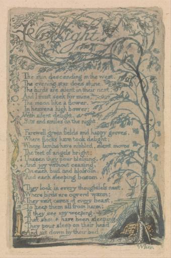 Keywords: William Blake - Songs of Innocence and of Experience, Plate 30, "Night" (Bentley 20) - Google Art Project.jpg print green pen ink black watercolor paper cream Relief etching printed in green with pen and black ink and watercolor on moderately thick slightly textured cream wove paper London 1757 London 1827 William male 2369124 Blake British 1757 - 1827 /collection/yale-center-for-british-art/artwork/songs-of-innocence-and-of-experience-plate-30-night-bentley-20-william-blake/2364476/ William Blake Artist /artist/william-blake/4130035/ 4130035 /collection/yale-center-for-british-art/ Yale Center for British Art 2305845 http //britishart yale edu/ 2/23/2012 9 37 18 PM /collection/yale-center-for-british-art/artwork/songs-of-innocence-and-of-experience-plate-30-night-bentley-20-william-blake/2364476/ 1789 1789 branches women angels leaf wings text trees vines gowns historical subject Relief etching printed in green with pen and black ink and watercolor on moderately thick slightly textured cream wove paper 111 2364476 False 1789 3/24/2012 2 27 25 PM YCBA/lido-TMS-2508 http //collections britishart yale edu/vufind/Record/1667378 Yale Center for British Art Paul Mellon Collection print 1780 1790 Felpham Creation w70 x h111 cm 1789 False 0 6640625 Volume songs-of-innocence-and-of-experience-plate-30-night-bentley-20-william-blake Songs of Innocence and of Experience Plate 30 Night Bentley 20 s 70 Inscribed in graphite upper center 17 Inscription _Signed_and_Dated Not signed not dated Not on View Relief etching printed in green with pen and black ink and watercolor on moderately thick slightly textured cream wove paper branches women angels leaf wings text trees vines gowns historical subject special url_id vQGmmE50BLUrfA PD-old-100-1923 1827 Songs of Innocence and Experience - Copy F Google Art Project works by William Blake |
