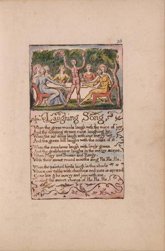 MAKE A MEME View Large Image William Blake - Songs of Innocence and of Experience, Plate 26, "Laughing Song" (Bentley 15) - Google Art Project.jpg print brown pen ink black watercolor paper cream Relief etching printed in dark-brown with pen and black ink and ...