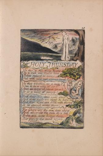 Keywords: William Blake - Songs of Innocence and of Experience, Plate 38, "Holy Thursday" (Bentley 33) - Google Art Project.jpg print brown pen ink black watercolor paper cream Relief etching printed in dark-brown with pen and black ink and watercolor on moderately thick slightly textured cream wove paper London 1757 London 1827 William male 2369124 Blake British 1757 - 1827 /collection/yale-center-for-british-art/artwork/songs-of-innocence-and-of-experience-plate-38-holy-thursday-bentley-33-william-blake/2393104/ William Blake Artist /artist/william-blake/4130035/ 4130035 /collection/yale-center-for-british-art/ Yale Center for British Art 2305845 http //britishart yale edu/ 2/23/2012 9 52 22 PM /collection/yale-center-for-british-art/artwork/songs-of-innocence-and-of-experience-plate-38-holy-thursday-bentley-33-william-blake/2393104/ 1789 1789 to 1794 branches leaf dead mother children women text mountain vegetation tree vines gown nude historical subject Relief etching printed in dark-brown with pen and black ink and watercolor on moderately thick slightly textured cream wove paper 114 2393104 False 1794 3/25/2012 6 28 32 PM YCBA/lido-TMS-3759 http //collections britishart yale edu/vufind/Record/1668003 Yale Center for British Art Paul Mellon Collection print 1780 1800 Felpham Creation w73 x h114 cm 1789 to 1794 False 0 658203125 Volume songs-of-innocence-and-of-experience-plate-38-holy-thursday-bentley-33-william-blake Songs of Innocence and of Experience Plate 38 Holy Thursday Bentley 33 s 73 Inscribed in black ink upper right 38 Inscription _Signed_and_Dated Not signed not dated Not on View Relief etching printed in dark-brown with pen and black ink and watercolor on moderately thick slightly textured cream wove paper branches leaf dead mother children women text mountain vegetation tree vines gown nude historical subject special url_id YQEHZyDkVMqy1Q PD-old-100-1923 1827 Songs of Innocence and Experience - Copy L Google Art Project works by William Blake Songs of Experience - Holy Thursday |
