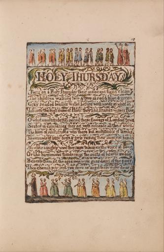 Keywords: William Blake - Songs of Innocence and of Experience, Plate 10, "Holy Thursday" (Bentley 19) - Google Art Project.jpg print brown pen ink black watercolor paper cream Relief etching printed in dark-brown with pen and black ink and watercolor on moderately thick slightly textured cream wove paper London 1757 London 1827 William male 2369124 Blake British 1757 - 1827 /collection/yale-center-for-british-art/artwork/songs-of-innocence-and-of-experience-plate-10-holy-thursday-bentley-19-william-blake/2385469/ William Blake Artist /artist/william-blake/4130035/ 4130035 /collection/yale-center-for-british-art/ Yale Center for British Art 2305845 http //britishart yale edu/ 2/23/2012 9 51 34 PM /collection/yale-center-for-british-art/artwork/songs-of-innocence-and-of-experience-plate-10-holy-thursday-bentley-19-william-blake/2385469/ 1789 1789 to 1794 branches leaf children procession walking pairs text trees vine historical subject Relief etching printed in dark-brown with pen and black ink and watercolor on moderately thick slightly textured cream wove paper 114 2385469 False 1794 3/24/2012 4 34 08 PM YCBA/lido-TMS-3729 http //collections britishart yale edu/vufind/Record/1667970 Yale Center for British Art Paul Mellon Collection print 1780 1800 Felpham Creation w79 x h114 cm 1789 to 1794 False 0 650390625 Volume songs-of-innocence-and-of-experience-plate-10-holy-thursday-bentley-19-william-blake Songs of Innocence and of Experience Plate 10 Holy Thursday Bentley 19 s 79 Inscribed in black ink upper right 10 Inscription _Signed_and_Dated Not signed not dated Not on View Relief etching printed in dark-brown with pen and black ink and watercolor on moderately thick slightly textured cream wove paper branches leaf children procession walking pairs text trees vine historical subject special url_id NAHyLw9nigJ8Ig PD-old-100-1923 1827 Songs of Innocence and Experience - Copy L Google Art Project works by William Blake |