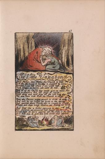 | Keywords: William Blake - Songs of Innocence and of Experience, Plate 43, "The Little Vagabond, " (Bentley 45) - Google Art Project.jpg print brown pen ink black watercolor paper cream Relief etching printed in dark-brown with pen and black ink and watercolor on moderately thick slightly textured cream wove paper London 1757 London 1827 William male 2369124 Blake British 1757 - 1827 /collection/yale-center-for-british-art/artwork/songs-of-innocence-and-of-experience-plate-43-the-little-vagabond-bentley-45-william-blake/2392105/ William Blake Artist /artist/william-blake/4130035/ 4130035 /collection/yale-center-for-british-art/ Yale Center for British Art 2305845 http //britishart yale edu/ 2/23/2012 9 52 32 PM /collection/yale-center-for-british-art/artwork/songs-of-innocence-and-of-experience-plate-43-the-little-vagabond-bentley-45-william-blake/2392105/ 1789 1789 to 1794 kneeling beard children man men women fire text cave vegetation vines historical subject Relief etching printed in dark-brown with pen and black ink and watercolor on moderately thick slightly textured cream wove paper 111 2392105 False 1794 3/24/2012 5 11 20 PM YCBA/lido-TMS-3765 http //collections britishart yale edu/vufind/Record/1668010 Yale Center for British Art Paul Mellon Collection print 1780 1800 Felpham Creation w67 x h111 cm 1789 to 1794 False 0 6640625 Volume songs-of-innocence-and-of-experience-plate-43-the-little-vagabond-bentley-45-william-blake Songs of Innocence and of Experience Plate 43 The Little Vagabond Bentley 45 s 67 Inscribed in black ink upper right 43 Inscription _Signed_and_Dated Not signed not dated Not on View Relief etching printed in dark-brown with pen and black ink and watercolor on moderately thick slightly textured cream wove paper kneeling beard children man men women fire text cave vegetation vines historical subject special url_id hwGg3ns_bHCSCw PD-old-100-1923 1827 Songs of Innocence and Experience - Copy L Google Art Project works by William Blake Songs of Experience - The Little Vagabond |