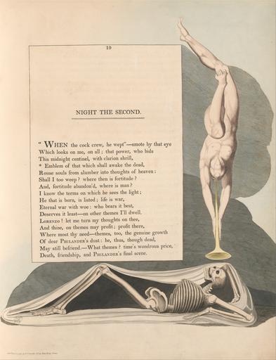 Keywords: William Blake - Young's Night Thoughts, Page 19, "Emblem of That Which Shall Awake the Dead" - Google Art Project.jpg etching line engraving watercolor paper cream Etching and line engraving with watercolor on moderately thick slightly textured cream wove paper London 1757 London 1827 William male 2369124 Blake British 1757 - 1827 /collection/yale-center-for-british-art/artwork/youngs-night-thoughts-page-19-emblem-of-that-which-shall-awake-the-dead-william-blake/2388202/ William Blake Artist /artist/william-blake/4130035/ 4130035 /collection/yale-center-for-british-art/ Yale Center for British Art 2305845 http //britishart yale edu/ 2/23/2012 9 48 33 PM /collection/yale-center-for-british-art/artwork/youngs-night-thoughts-page-19-emblem-of-that-which-shall-awake-the-dead-william-blake/2388202/ 1797 1797 man men skeleton text trumpet trumpet nude nudes historical subject Etching and line engraving with watercolor on moderately thick slightly textured cream wove paper 445 2388202 False 1797 3/24/2012 4 50 02 PM YCBA/lido-TMS-3540 http //collections britishart yale edu/vufind/Record/1667832 Yale Center for British Art Paul Mellon Collection print 1790 1800 Felpham Creation w327 x h445 cm 1797 False 0 767578125 Volume youngs-night-thoughts-page-19-emblem-of-that-which-shall-awake-the-dead-william-blake Young's Night Thoughts Page 19 Emblem of That Which Shall Awake the Dead y 327 No inscription Inscription _Signed_and_Dated Not signed not dated Not on View Etching and line engraving with watercolor on moderately thick slightly textured cream wove paper man men skeleton text trumpet trumpet nude nudes historical subject special url_id ngEcylmadKZ0AQ PD-old-100-1923 1827 William Blake's illustrations to Young's Night Thoughts 019 |