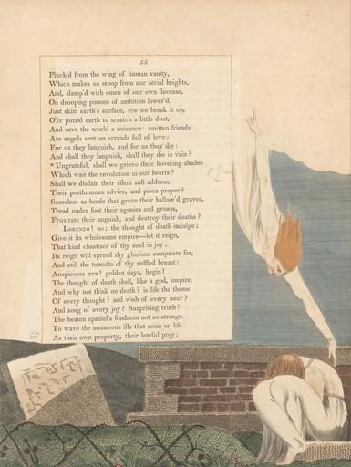 Keywords: William Blake - Young's Night Thoughts, Page 55, "Ungrateful, Shall We Grieve Their Hovering Shades" - Google Art Project.jpg Google Art Project watercolor London 1757 London 1827 William male 2369124 Blake British 1757 - 1827 /collection/yale-center-for-british-art/artwork/youngs-night-thoughts-page-55-ungrateful-shall-we-grieve-their-hovering-shades-william-blake/2389256/ William Blake Artist /artist/william-blake/4130035/ 4130035 /collection/yale-center-for-british-art/ Yale Center for British Art 2305845 http //britishart yale edu/ 2/23/2012 9 48 54 PM /collection/yale-center-for-british-art/artwork/youngs-night-thoughts-page-55-ungrateful-shall-we-grieve-their-hovering-shades-william-blake/2389256/ 1797 1797 angel pointing women thorns grass text grave flowers plants vines tombstone gravestone gravestone historical subject mourning Etching and line engraving with watercolor on moderately thick slightly textured cream wove paper 445 2389256 False 1797 3/25/2012 9 15 07 PM YCBA/lido-TMS-3556 http //collections britishart yale edu/vufind/Record/1667849 Yale Center for British Art Paul Mellon Collection painting 1790 1800 Felpham Creation w330 x h445 cm 1797 False 0 751953125 Volume youngs-night-thoughts-page-55-ungrateful-shall-we-grieve-their-hovering-shades-william-blake Young's Night Thoughts Page 55 Ungrateful Shall We Grieve Their Hovering Shades y 330 No inscription Inscription _Signed_and_Dated Not signed not dated Not on View Etching and line engraving with watercolor on moderately thick slightly textured cream wove paper angel pointing women thorns grass text grave flowers plants vines tombstone gravestone gravestone historical subject mourning special url_id NwHZwB4ieKB_NQ PD-old-100-1923 1827 William Blake's illustrations to Young's Night Thoughts 055 Google Art Project works by William Blake |