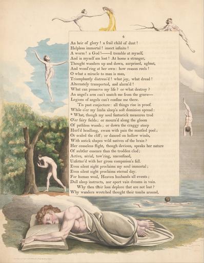 Keywords: William Blake - Young's Night Thoughts, Page 4, "What, though My Soul Fantastick Measures Trod" - Google Art Project.jpg etching line engraving watercolor paper cream Etching and line engraving with watercolor on moderately thick slightly textured cream wove paper London 1757 London 1827 William male 2369124 Blake British 1757 - 1827 /collection/yale-center-for-british-art/artwork/youngs-night-thoughts-page-4-what-though-my-soul-fantastick-measures-trod-william-blake/2390036/ William Blake Artist /artist/william-blake/4130035/ 4130035 /collection/yale-center-for-british-art/ Yale Center for British Art 2305845 http //britishart yale edu/ 2/23/2012 9 48 58 PM /collection/yale-center-for-british-art/artwork/youngs-night-thoughts-page-4-what-though-my-soul-fantastick-measures-trod-william-blake/2390036/ 1797 1797 branches sleeping women men swimming text trees quill pen pen nudes historical subject book Etching and line engraving with watercolor on moderately thick slightly textured cream wove paper 445 2390036 False 1797 3/24/2012 5 02 10 PM YCBA/lido-TMS-3559 http //collections britishart yale edu/vufind/Record/1667852 Yale Center for British Art Paul Mellon Collection print 1790 1800 London Creation w327 x h445 cm 1797 False 0 77734375 Volume youngs-night-thoughts-page-4-what-though-my-soul-fantastick-measures-trod-william-blake Young's Night Thoughts Page 4 What though My Soul Fantastick Measures Trod y 327 No inscription Inscription _Signed_and_Dated Not signed not dated Not on View Etching and line engraving with watercolor on moderately thick slightly textured cream wove paper branches sleeping women men swimming text trees quill pen pen nudes historical subject book special url_id YwEfemKaW_YUpg PD-old-100-1923 1827 William Blake's illustrations to Young's Night Thoughts 004 Google Art Project works by William Blake |