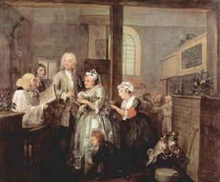 Keywords: William Hogarth 023.jpg A Rake's Progress series by William Hogarth de Gemäldefolge »Der Lebensweg eines Wüstlings« Szene Die Heirat mit einer Witwe oil canvas cm 62 5 75 de London Institution Sir John Soane's Museum London de Sir John Soane's Museum William Hogarth's series w A Rake's Progress Tom attempts to salvage his fortune by marrying a rich but aged and ugly w old maid at St Marylebone de Satire Zyklus von acht Gemälden The Yorck Project 10 000 Meisterwerke der Malerei DVD-ROM 2002 ISBN 3936122202 Distributed by DIRECTMEDIA Publishing GmbH 1732-1735 creator William Hogarth http //mail wikipedia org/pipermail/wikide-l/2005-April/012195 html Other versions PD-old-100 PD-Art-YorckProject DEFAULTSORT Hogarth A Rake's Progress 5 A Rake's Progress William Hogarth - A Rake's Progress Plate 5 Soane Museum ¢ Rococo paintings in the United Kingdom Rococo paintings of people 1735 oil on canvas paintings in the United Kingdom Wedding ceremonies in paintings Brides in art Grooms in art Widows in art Box pews 18th-century paintings of dogs 18th-century paintings of people |