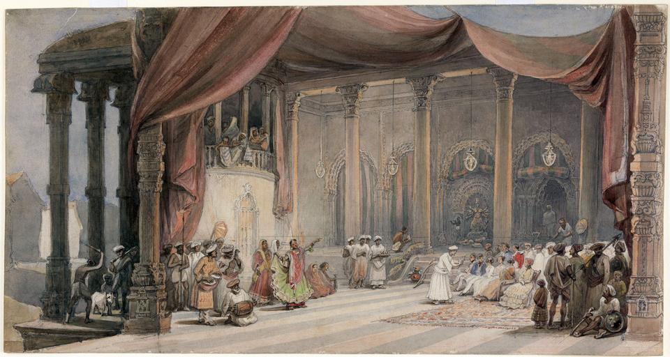 Keywords: William Prinsep, Europeans being entertained by dancers and musicians in a splendid Indian house in Calcutta during Durga puja (1830s–1840s).jpg A depiction of celebrations inside a house during Durga Puja in Kolkata Calcutta West Bengal India where Europeans are being entertained The artist Prinsep was a merchant with the Calcutta firm of Palmer Company between 1830s 1840s watercolor cm 22 9 43 5 Institution British Library http //www bl uk/onlinegallery/onlineex/apac/other/019wdz000004035u00000000 html object history credit line accession number WD4035 http //ogimages bl uk/images/019/019WDZ000004035U00000000 5BSVC2 5D jpg other versions PD-Art-100 1830s watercolor paintings 1840s watercolor paintings 1830s paintings from India 1840s paintings from India Durga Puja in Kolkata British Library India Office western drawings collection Watercolor paintings of people of India Durga Puja in art Kolkata in the 1830s |