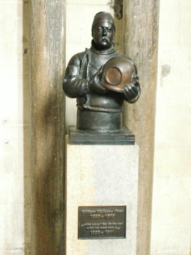 Keywords: William Walker.jpg William Walker statuette at Winchester Cathedral England own 2005-05-26 Jan Kameníček busts of men William Walker diver