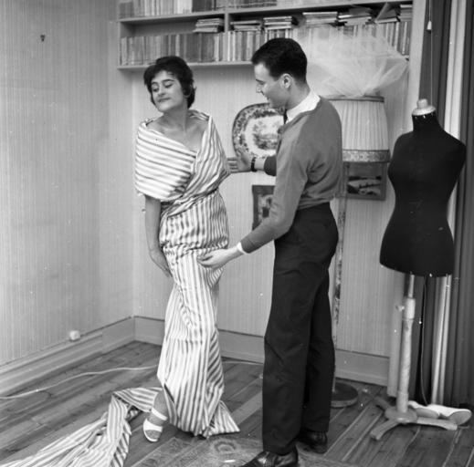 | Keywords: mote klær design art fashion clothes haute couturier blackandwhite monochrome black and white Visning av William Duborgh Jensens aller første kolleksjon i Riddervoldsgate 9 på Frogner i Oslo, våren 1958. Modellen Bjørg sammen med William. Fotograf: Strand Arkivreferanse: PA-0797_Ud_2271_002_002 Visning av William Duborgh Jensens aller første kolleksjon i Riddervoldsgate 9 på Frogner i Oslo, våren 1958. Modellen Bjørg sammen med William. Fotograf: Strand Arkivreferanse: PA-0797_Ud_2271_002_002 |