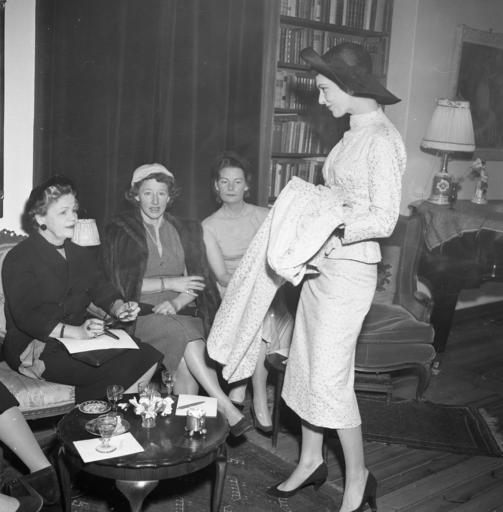 | Keywords: mote klær design art fashion clothes haute couturier blackandwhite people monochrome groupshot black and white Visning av William Duborgh Jensens aller første kolleksjon i Riddervoldsgate 9 på Frogner i Oslo, våren 1958. Fotograf: Strand Arkivreferanse: PA-0797_Ud_2271_001_001 Visning av William Duborgh Jensens aller første kolleksjon i Riddervoldsgate 9 på Frogner i Oslo, våren 1958. Fotograf: Strand Arkivreferanse: PA-0797_Ud_2271_001_001 | ||||