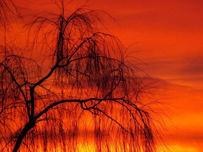 Keywords: willow sunset sun sky cloud tree red fire in the evening orange black